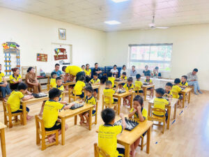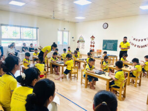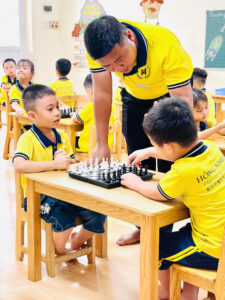 Tại Mầm non Hồng Nhung, lớp học cờ vua được dẫn dắt bởi thầy giáo có chuyên môn cao, giàu kinh nghiệm và luôn tâm huyết trong từng tiết học. Đặc biệt, công nghệ AI hiện đại cũng được áp dụng để mô phỏng sinh động các nước đi, giúp trẻ dễ hiểu, dễ nhớ và hứng thú hơn trong quá trình tiếp cận môn học này.
